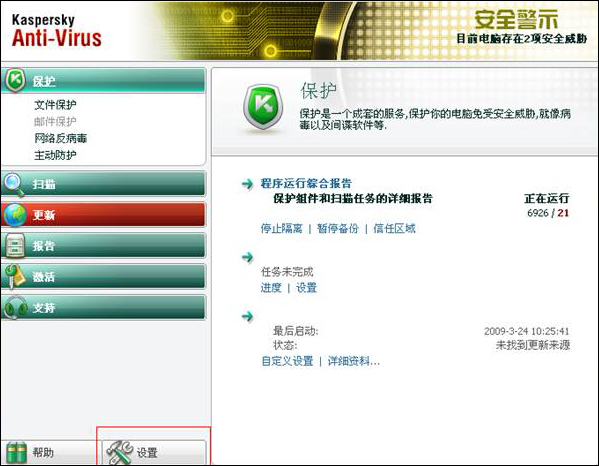 - 打开卡巴斯基设置界面。
