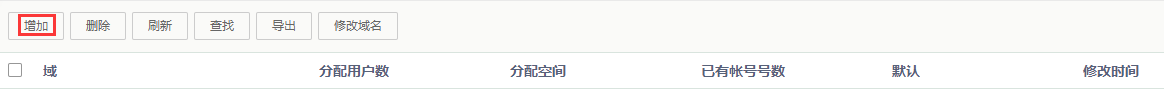 - 进入“组织用户”》“域管理”,添加域名,点击“增加”添加域名