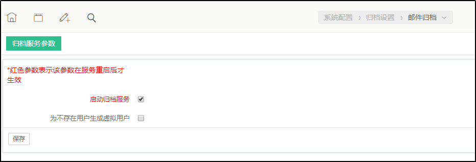 4.进入“系统配置”》“归档设置”》“邮件归档”