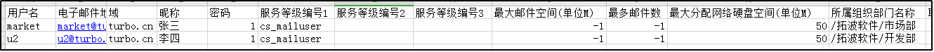 - 最大空间、最多邮件数、最大分配网络硬盘:按实际分配,默认-1