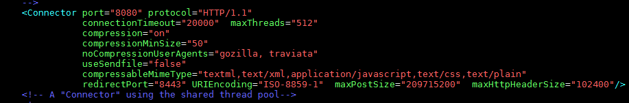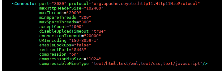 - 调整最大线程数,调整 Connnector/maxThreads 参数到一个适合的值,一般这个值要比服务器最大的同时访问数大100到200, 例子: