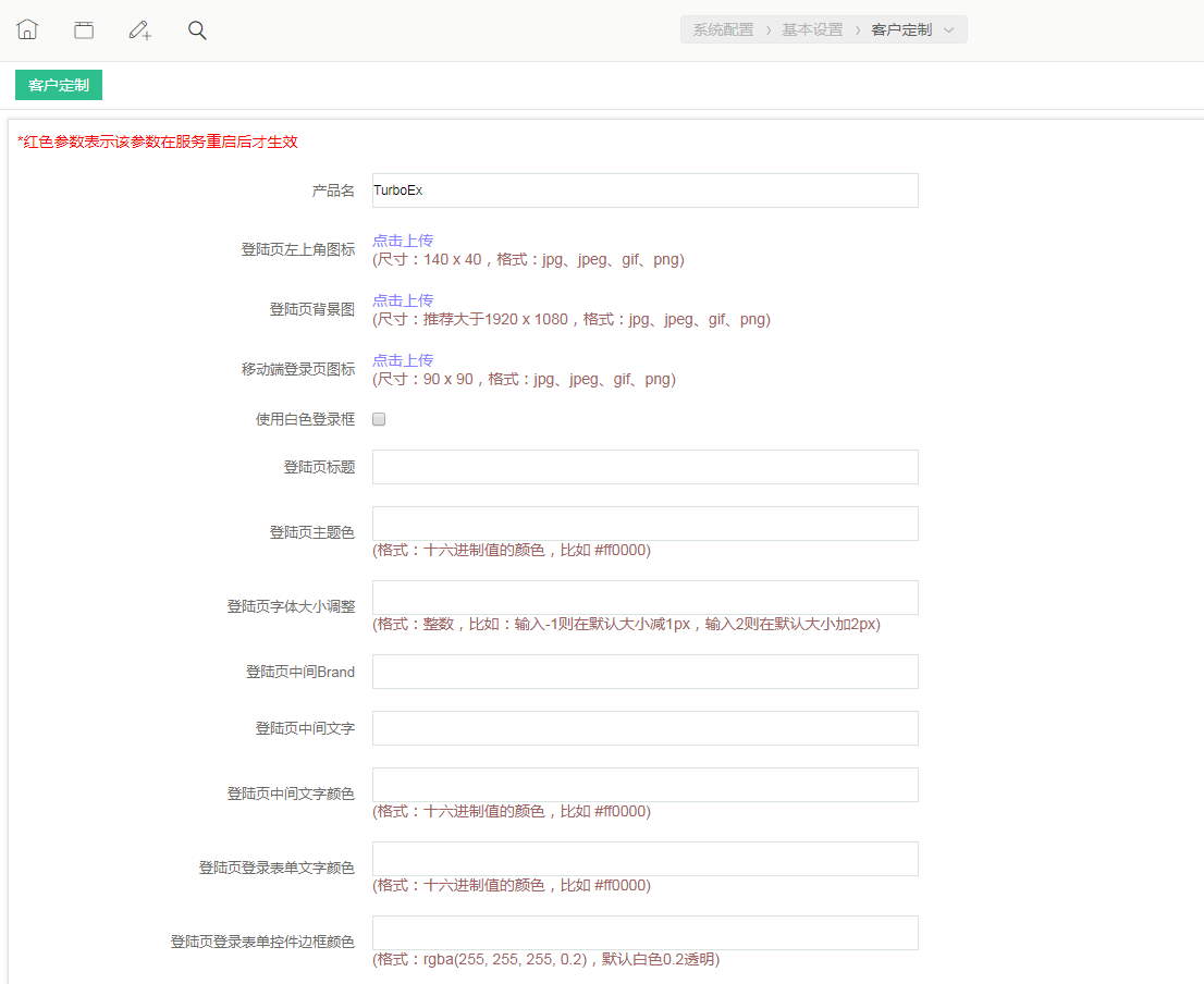 - 进入“系统配置”》“基本设置”》“客户定制”